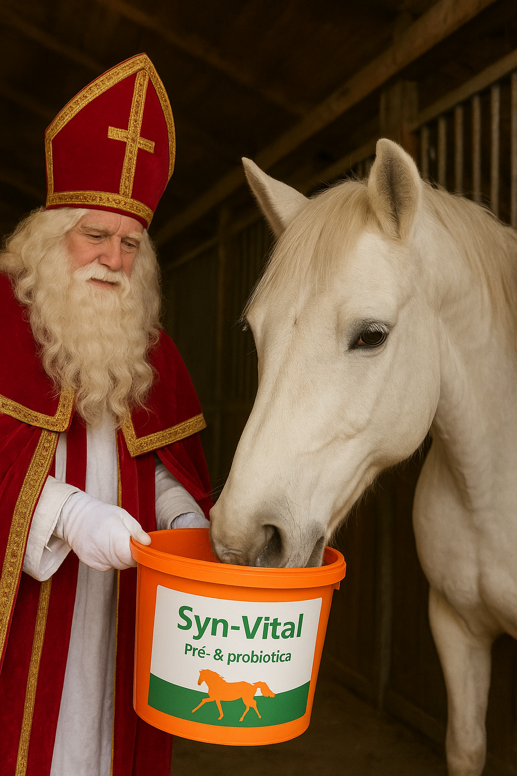 “Sinterklaas geeft mij al een tijdje Syn-Vital door mijn voer. Ik voel me er super fit door, mijn vacht glanst en mijn buik blijft rustig — zelfs na een hele zak wortels op pakjesavond.