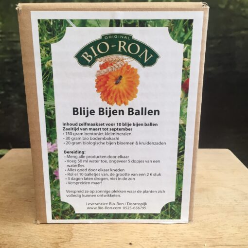 Met deze ballen kunt u eenvoudig iets doen om te helpen het tij te keren. Daarnaast kunt u genieten van kleurrijke perken en borders. Maak met behulp van water en de in de verpakking aanwezige bloemzaden, Bokashi en kleimineralen, mooie balletjes ter grootte van een 2€ munt. Laat ze twee dagen drogen, (niet in de zon) en strooi de balletjes op een zonnige plek.