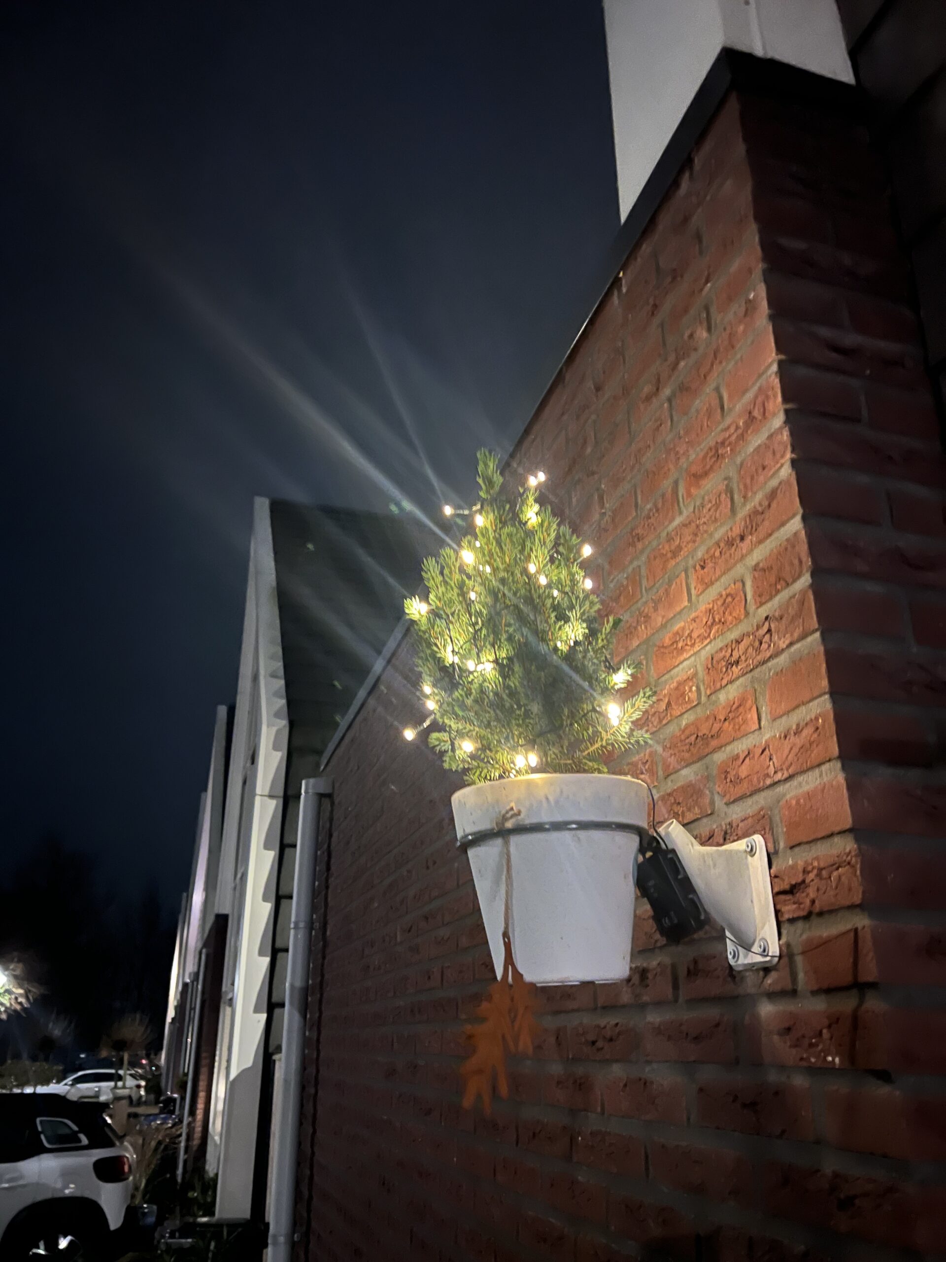 Maak het extra feestelijk met kerstgroen en lampjes in de winter.