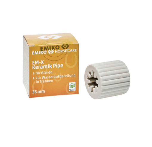 HorseCare EM-X keramiek, 35 mm. Door de waterkwaliteit te verbeteren met EMIKO® HorseCare EM-X® Ceramics, zullen paarden het water graag opnemen en voldoende drinken. De verhoogde waterinname verbetert de stofwisseling en het paard wordt vitaler.