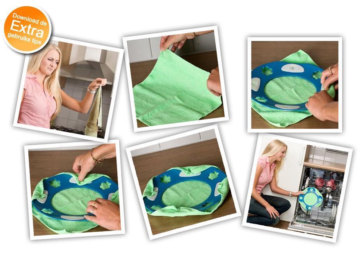 De Washplate is ontwikkeld om bacteriegroei te voorkomen. Terwijl je vaat wordt schoongespoeld, worden ook je doekjes perfect gereinigd door de warmte en het vaatwasmiddel. Zo blijft je keuken schoon en fris, zonder plastic afval of wegwerpdoekjes.