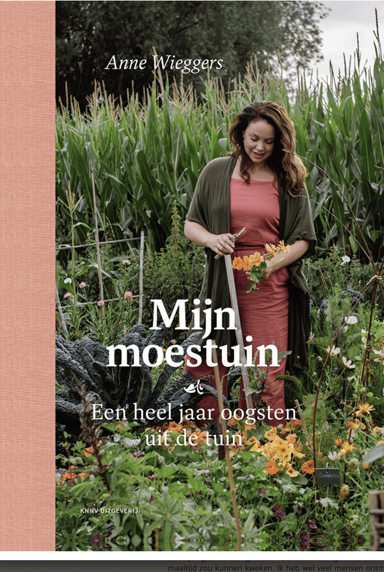 Ik geef je ook al mijn tips om zo vaak mogelijk, het liefst iedere dag, iets uit de tuin te kunnen eten, ook als je ruimte beperkt is. Een bosje bloemen hoort daar natuurlijk ook bij, want die verse oogst smaakt nog beter met een mooi boeketje op je tafel. Het allerbelangrijkste wat ik je leren kan met dit boek is: een heel jaar eten uit de tuin is mogelijk, het is lekkerder dan wat je maar kan kopen in de winkel, en iedereen kan het. En jij zeker. Er is een – inmiddels veelgebruikt en wellicht afgezaagd spreekwoord – ‘Gardening is like therapy, and you get tomatoes’. Dit is dus echt zo. Er is niets zo wezenlijk als iets vanuit een zaadje opkweken, het te zien groeien en het daarna te eten. Ik word er heel erg gelukkig van, en ik denk jij ook!” – Anne Wieggers