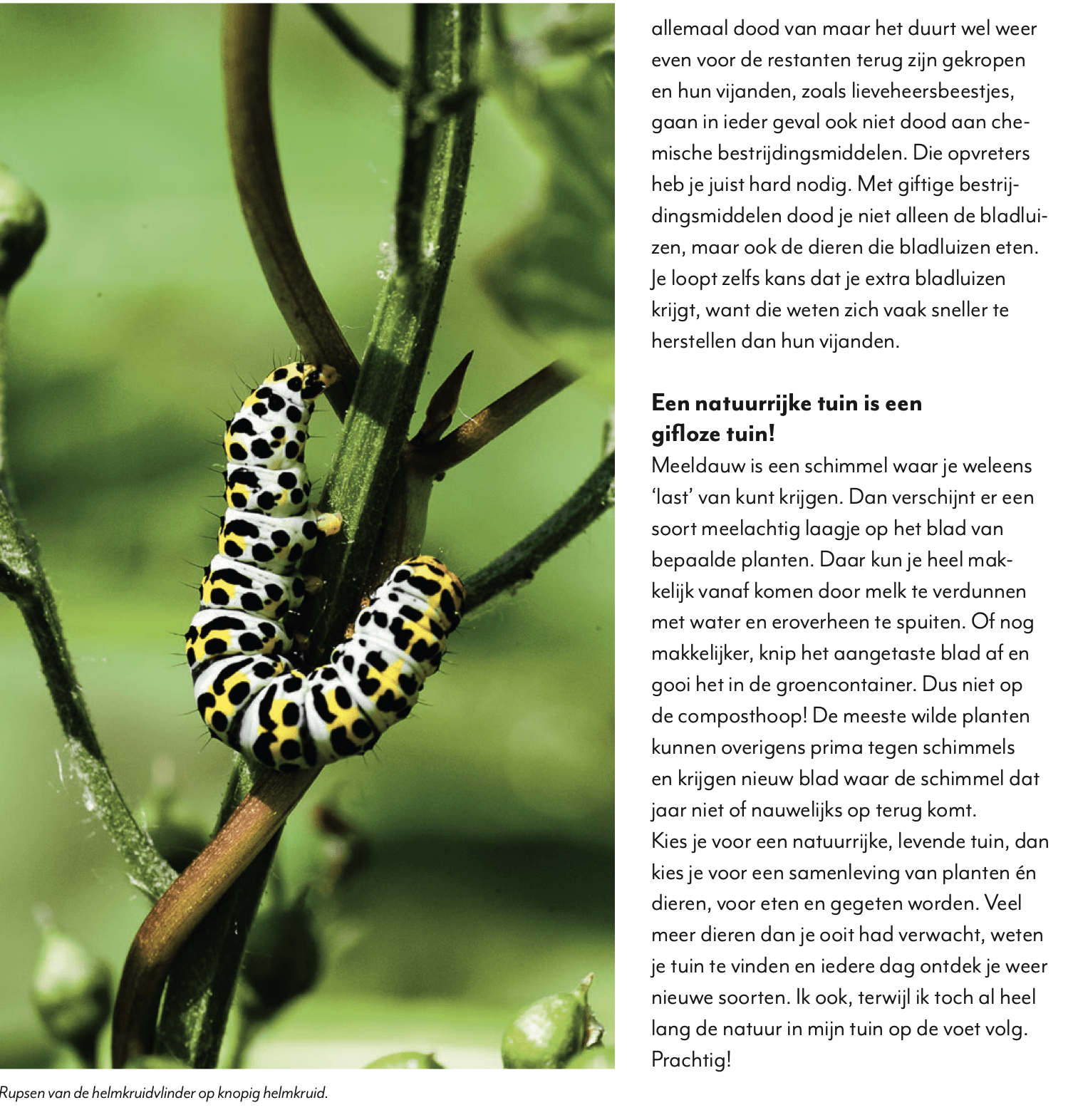 Iedere dag genieten van een weelderige bloemrijke tuin met de vele dieren die daar leven zoals vogels, salamanders, kikkers, muizen, vlinders en wilde bijen. Een tuin vol leven, een stukje natuur zelfs midden in een dorp of stad.