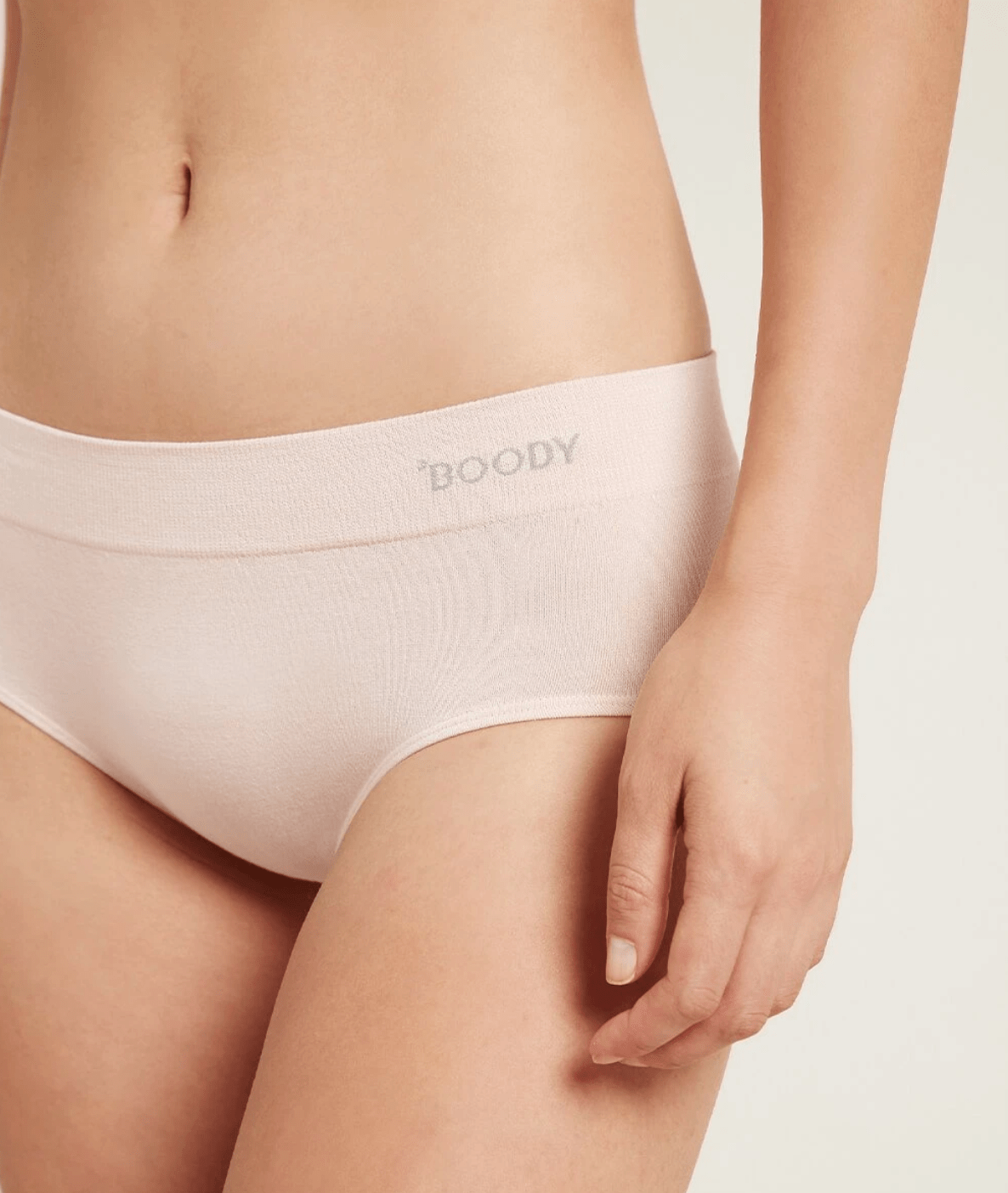 Verwacht alleen het beste van deze Boody Midi Heupslip. Niet te hoog en niet te laag. Deze slip is een middelhoog model tussen onze klassieke bikinislip en Tailleslips in. Zacht, middelhoog en comfortabel om je heupen. En dat is pas het begin.