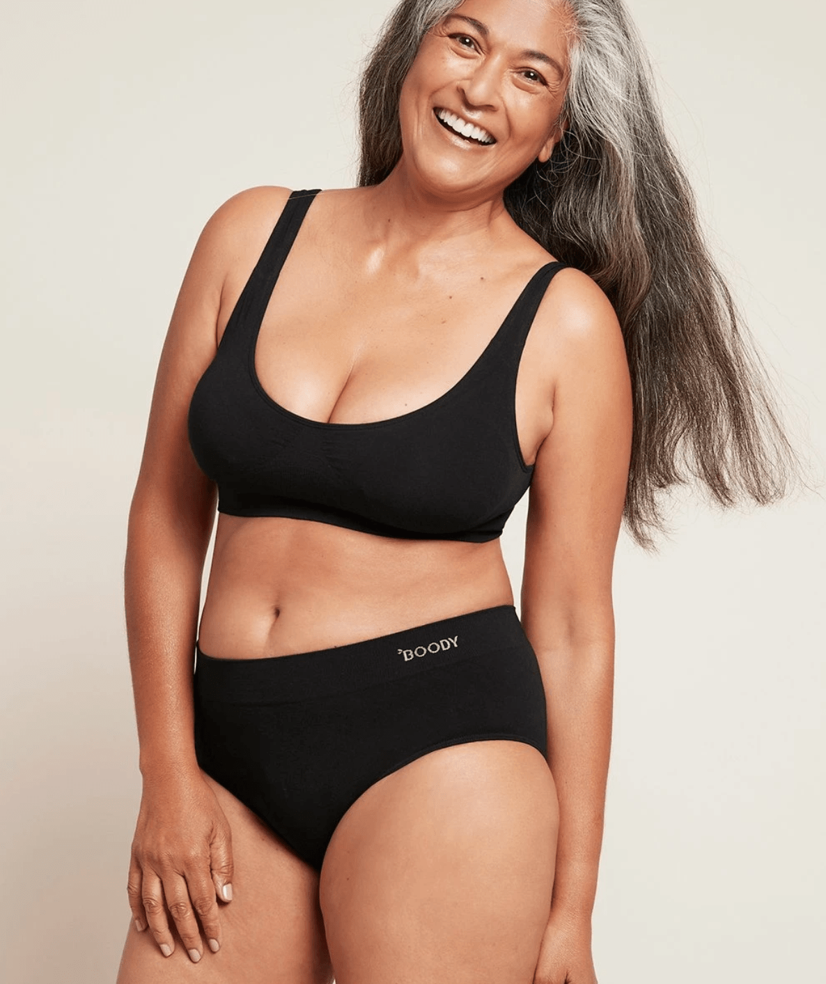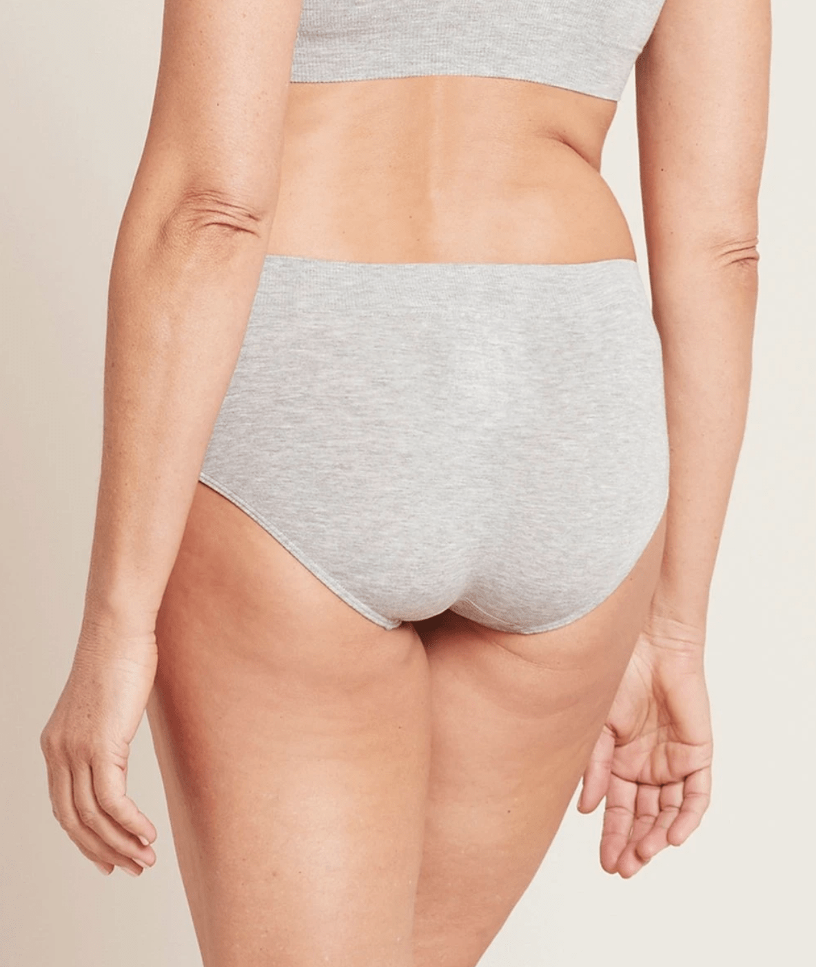 De brede tailleband biedt ondersteuning zonder te knellen en volgt je figuur op natuurlijke wijze voor een feilloos en fantastisch silhouet. Dat maakt ondergoed van bamboevezels onontbeerlijk in je kledingkast. Met zijn zachte en brede, plat-geribbelde tailleband en onze kenmerkende naadloze zijkanten is de Boody Midi Heupslip een klassieker in damesondergoed en een goede keuze als je gemiddelde of volledige bedekking wilt.
