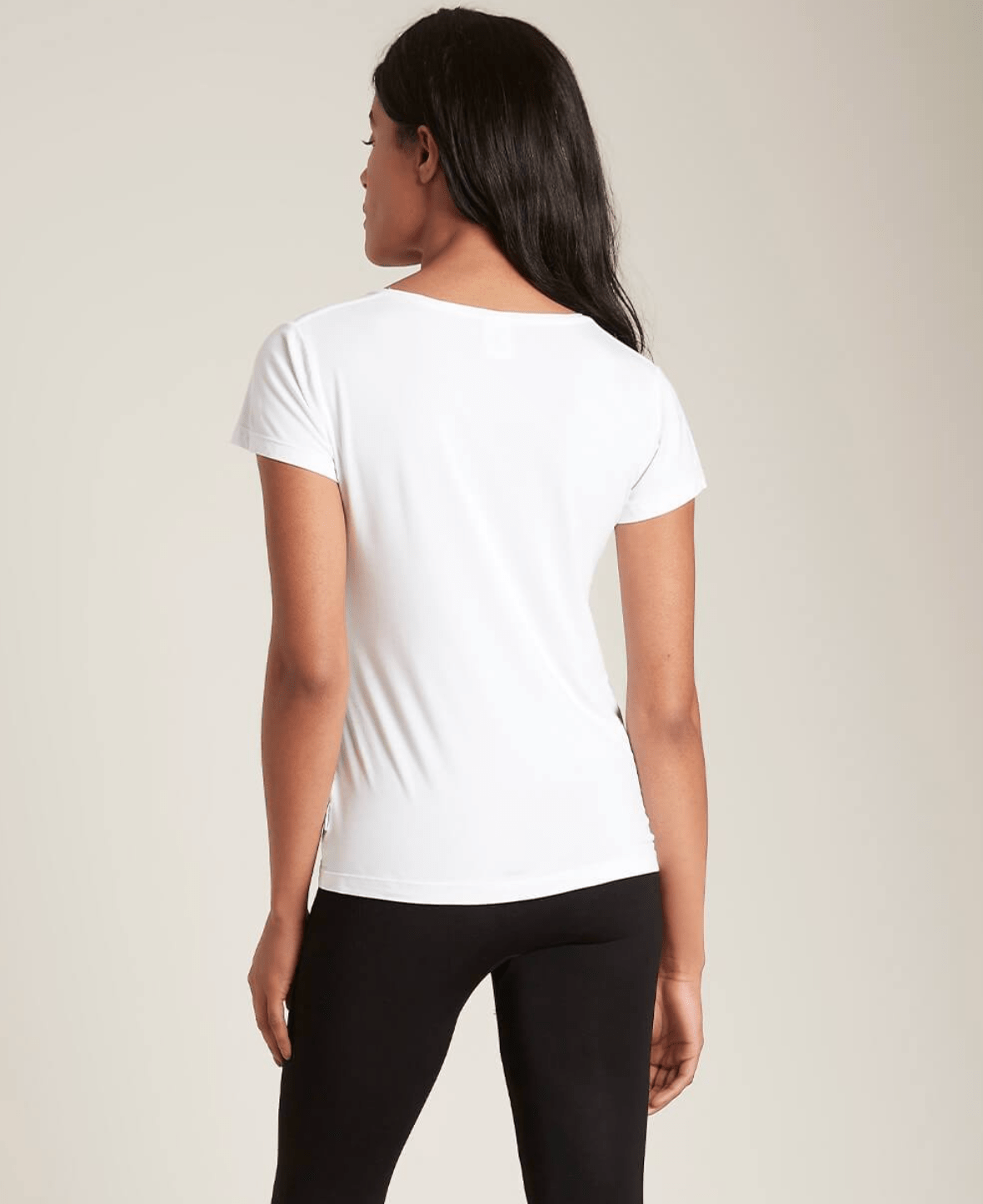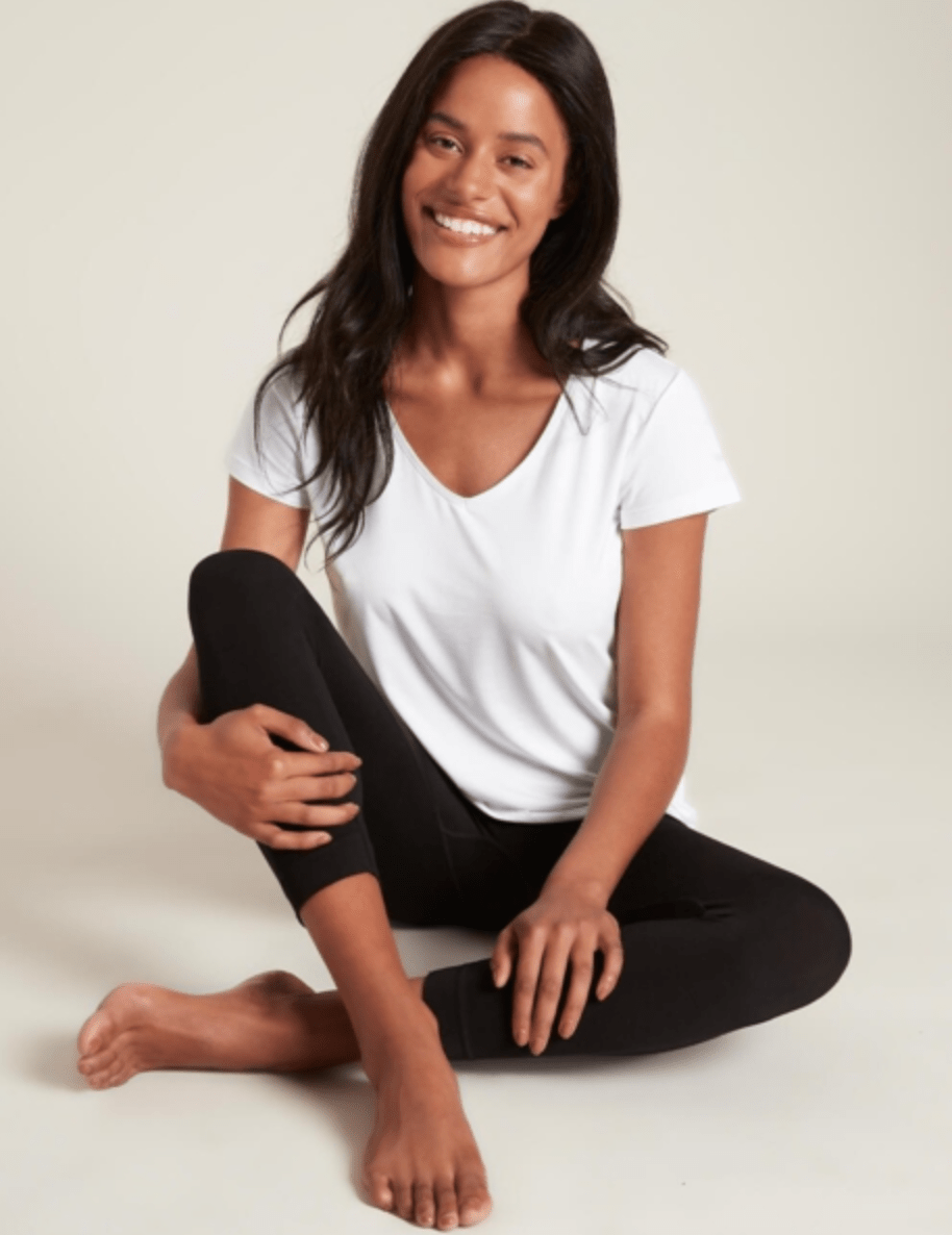 Deze Boody T-shirt V-hals heeft een subtiele v-hals. Dit lichtgewicht en ademende kledingstuk heeft een klassieke pasvorm en volgt je natuurlijke silhouet met ondersteunende stretch. Het dames T-shirt met V-hals valt op heuplengte en is ontworpen om op zichzelf te dragen of is het perfecte kledingstuk als je op zoek bent naar die extra zachtheid, bedekking en warmte op je huid.