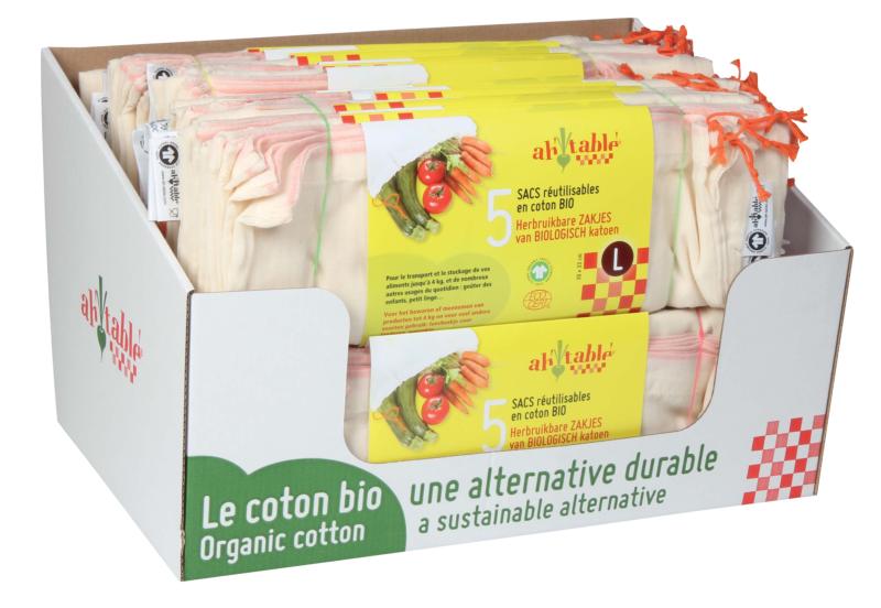 De zakjes zijn vervaardigd van 100% biologisch katoen, stevig en wasbaar. Ze zijn licht, ademend en perfect voor het bewaren van verse producten.