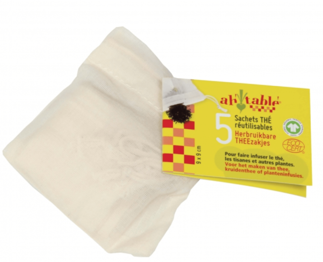 Herbruikbare theezakjes gemaakt van 100% biologische katoen. Het alternatief voor theezakjes en wegwerp theezakjes. Steeds weer opnieuw te gebruiken.