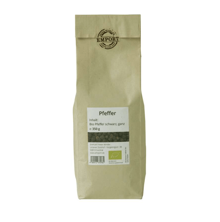 De peper is afkomstig van biologisch gecertificeerde EM-boerderijen in Zuid-India en is van uitstekende kwaliteit. Gegarandeerd eerlijke handel door directe import.