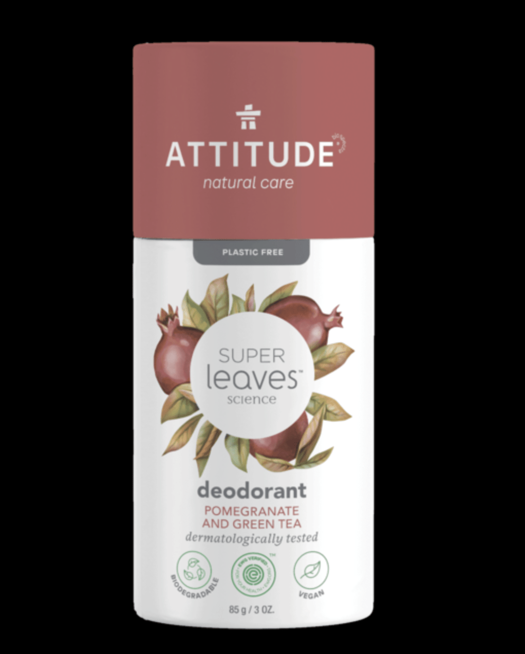 Attitude Leaves Deodorant Granaatappel en groene thee is een fantastische Deo doornat op natuurlijke basis.