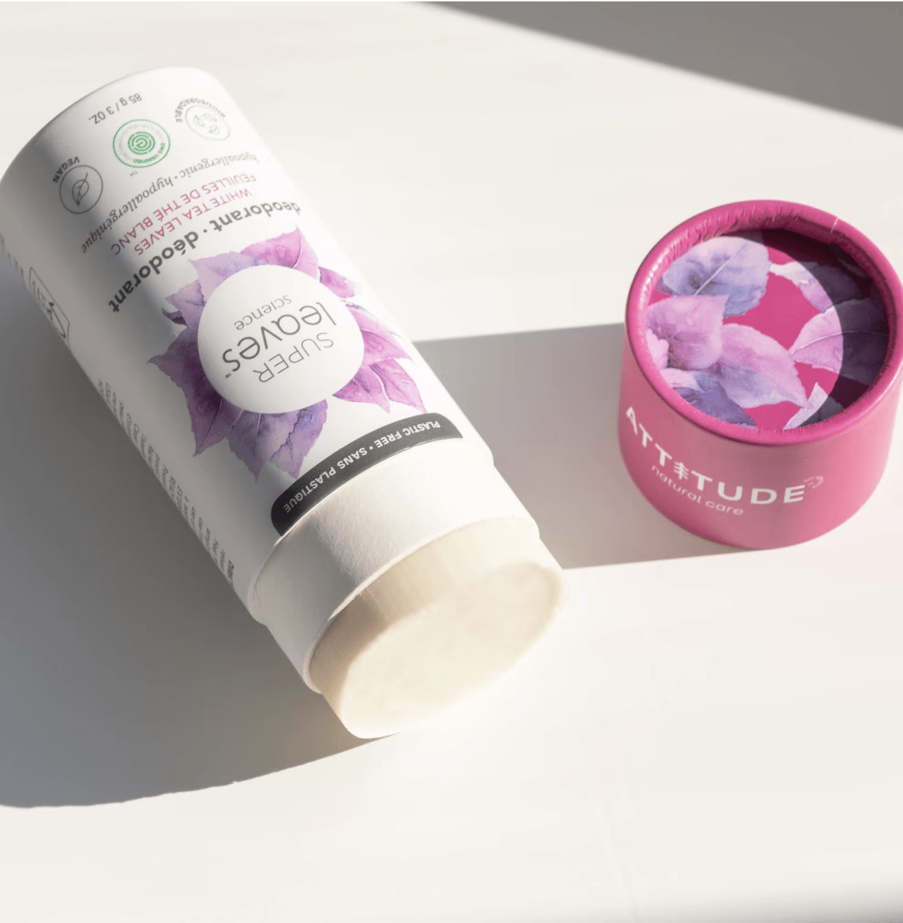 De plasticvrije natuurlijke deodorant van ATTITUDE maakt gebruik van een innovatieve, biologisch afbreekbare, volledig papieren verpakking die is ontworpen om het gebruik van plastic voor eenmalig gebruik te verminderen. Omdat zorg voor de planeet en je lichaam een dagelijkse bezigheid zou moeten zijn, is onze aluminiumvrije deodorant gemaakt van natuurlijke ingrediënten zoals pijlwortel en maïszetmeel die vocht opnemen en onaangename geurtjes op natuurlijke wijze elimineren. Onze EWG VERIFIED™ deodorant biedt langdurige bescherming – zonder het natuurlijke temperatuurregulerende zweetsysteem van het lichaam te verstoppen.