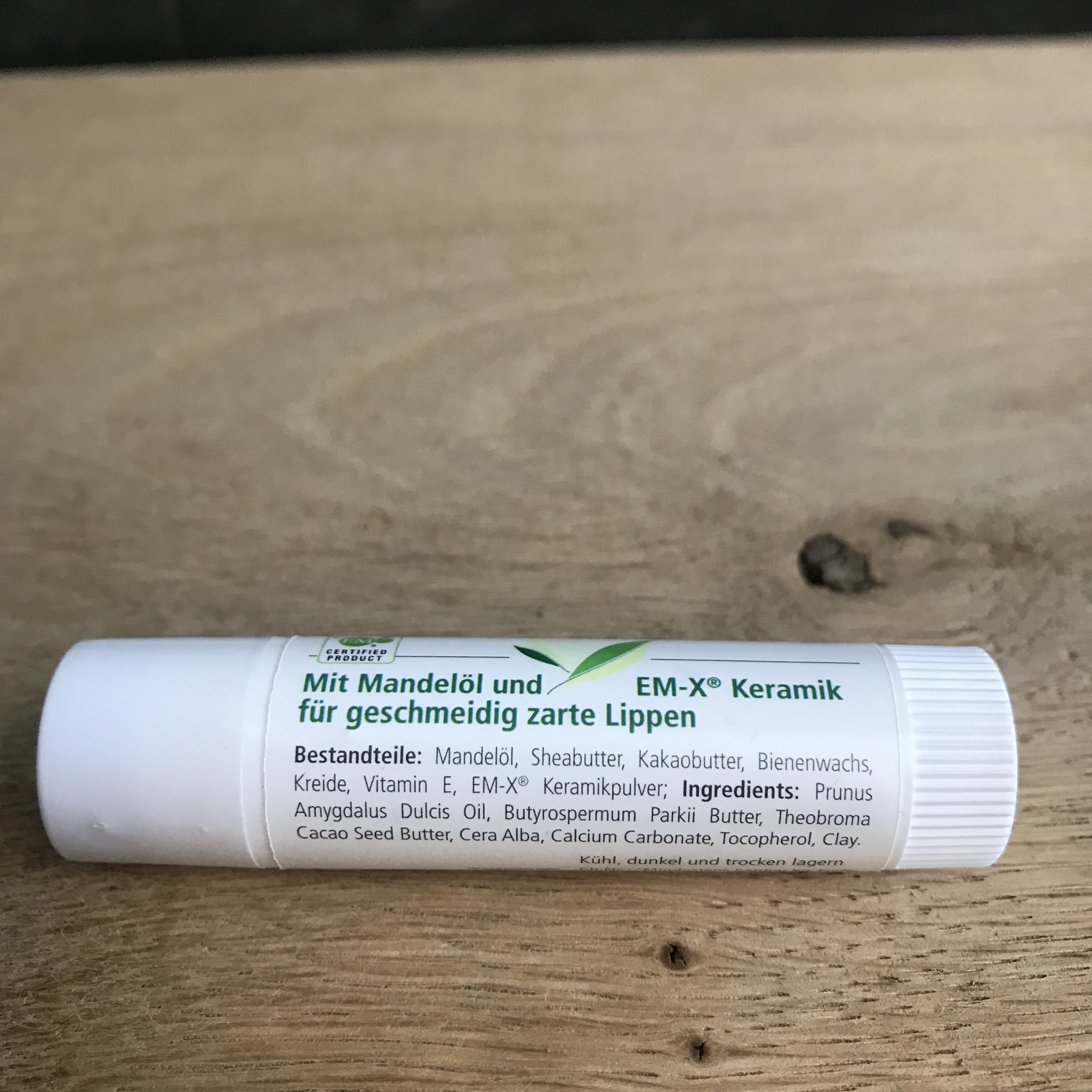 In de stick zit amandelolie, sheaboter, cacaoboter, bijenwas, krijt, vitamine E en EM-X® keramiekpoeder. Amandelolie wordt gewonnen uit rauwe amandelen. De olie bevat grote hoeveelheden enkelvoudig onverzadigde vetzuren, kalium, vitamine E, zink en eiwitten. Amandelolie is echt een tovermiddel: het maakt de huid gezonder, vertraagt het ouder worden van de huid en verwijdert bovendien onzuiverheden en dode huidcellen. De vitamine E in amandelolie voedt en beschermt de huid tegen schadelijke zonnestralen. Dankzij de amandelolie in onze EMiko lipverzorging kunt ook u zachte, roze lippen hebben! Het rijke vitaminegehalte en de hydraterende eigenschappen van amandelolie maken uw lippen zacht en roze. Uiteraard is onze EMiko lipverzorging 100% natuurlijk en 100% diervriendelijk.