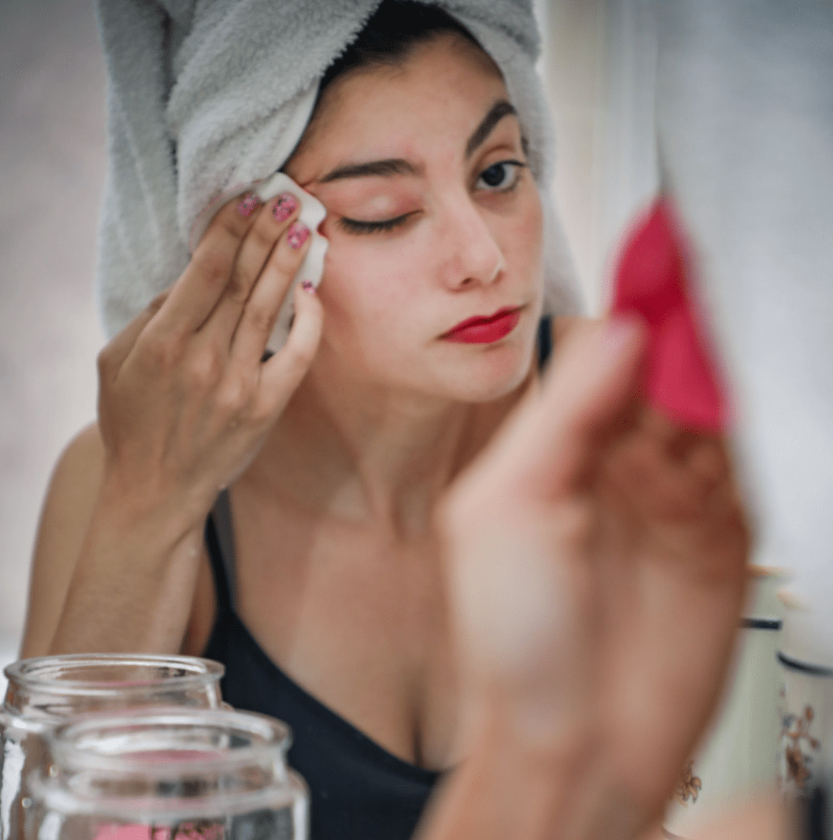 Maak je doekje gewoon nat met kraanwater. Plaats het dan een paar seconden op het oog en veeg het voorzichtig af. Ze zal de make-up zachtjes opzuigen! In het geval van een wat stevigere make-up, aarzel dan niet om daarnaast nog een of twee druppels plantaardige olie te gebruiken (en vergeet niet om je doekje vlak erna goed af te spoelen met koud water om de levensduur niet te verkorten).