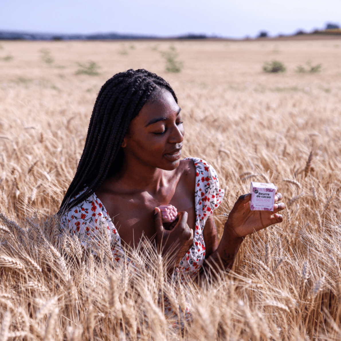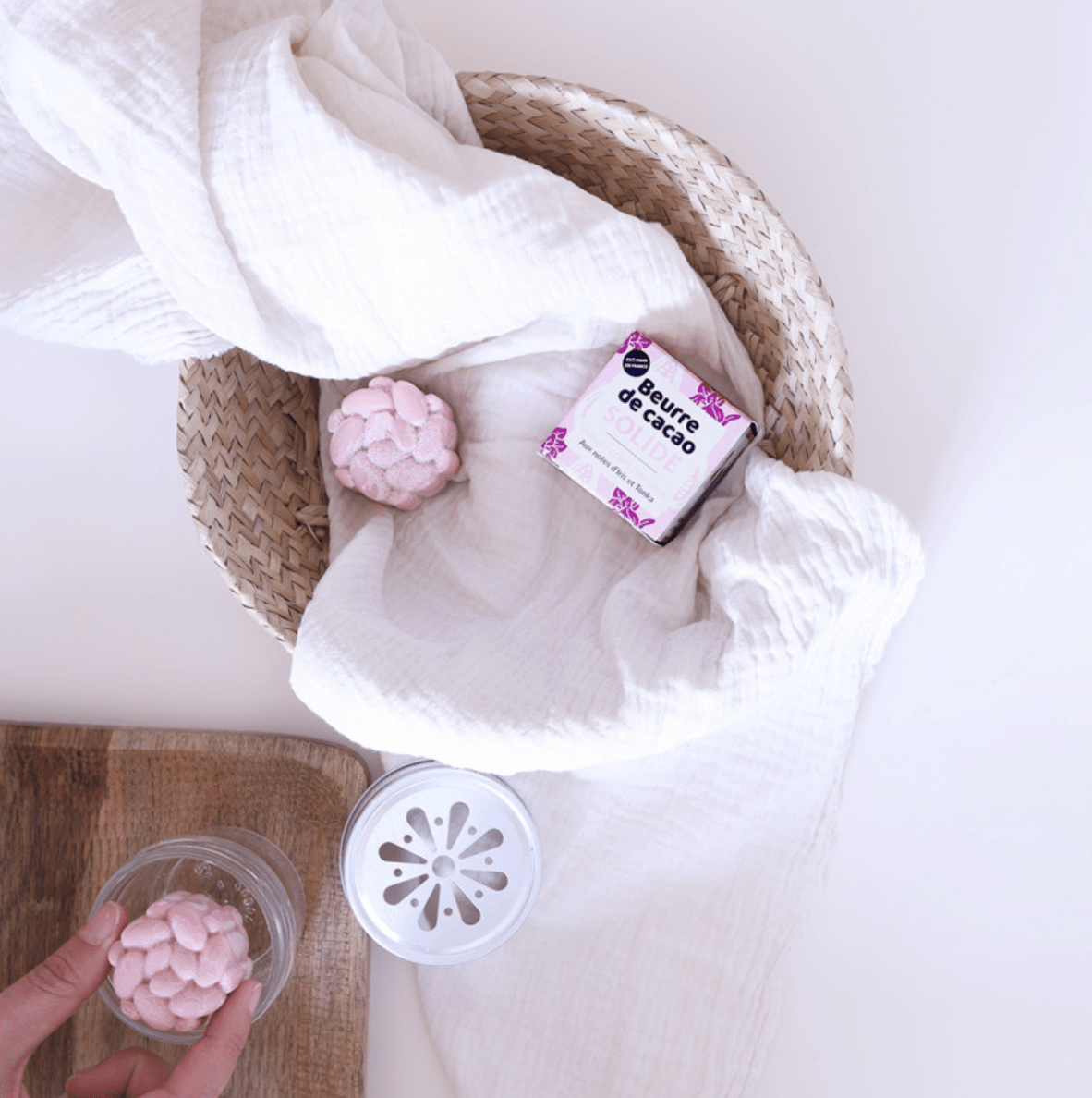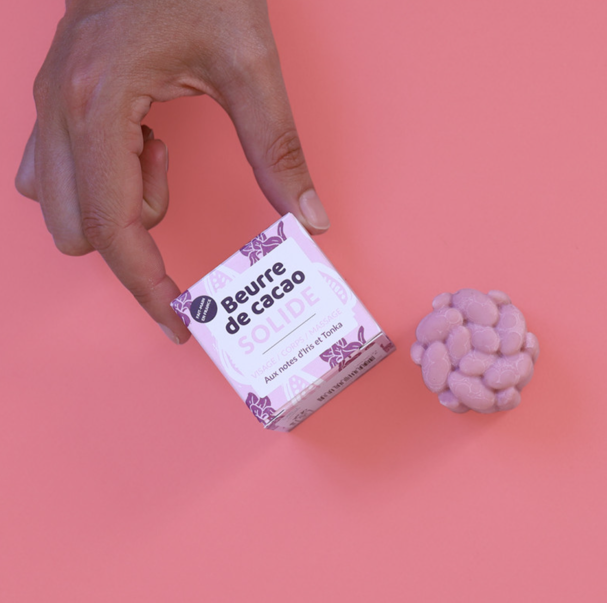 Altijd handgemaakt in Frankrijk, alle ingrediënten van deze nieuwe roze cacaoboter zijn van natuurlijke oorsprong en het is biologisch COSMOS Organic gecertificeerd. Zelfs de delicate geur met tonen van iris en tonka komt van een geur van natuurlijke oorsprong 🙂