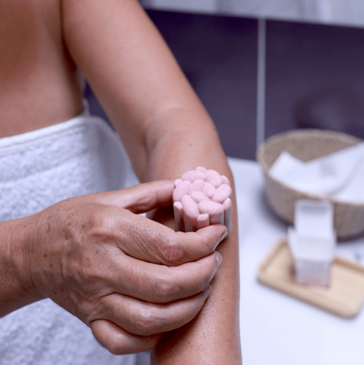 Verwarm, net als de eerste versie, de roze cacaoboter een paar seconden op het deel van het lichaam dat je wilt voeden. Het zal veranderen in een dunne olieachtige laag en je kunt het aanbrengen als een crème 🙂 Het is multifunctioneel, daarom houden we er ook van! Gebruik het als gezichtsolie, body butter of voor massages!