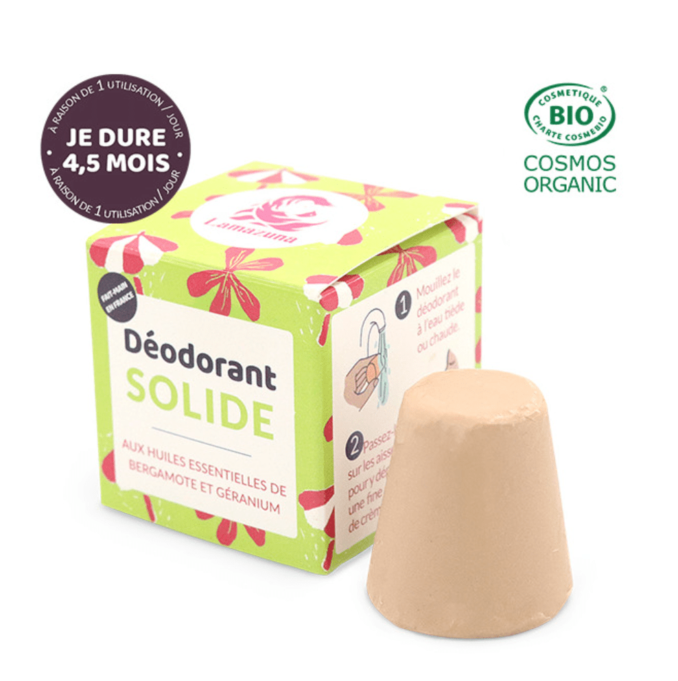 In de familie van deodoranten in blokvorm van Lamazuna vraag ik: een vaste deodorant in blokvorm met de geur van biologisch gecertificeerd bergamot-geranium! Een originele en gedurfde mix, maar vooral goed doordacht!