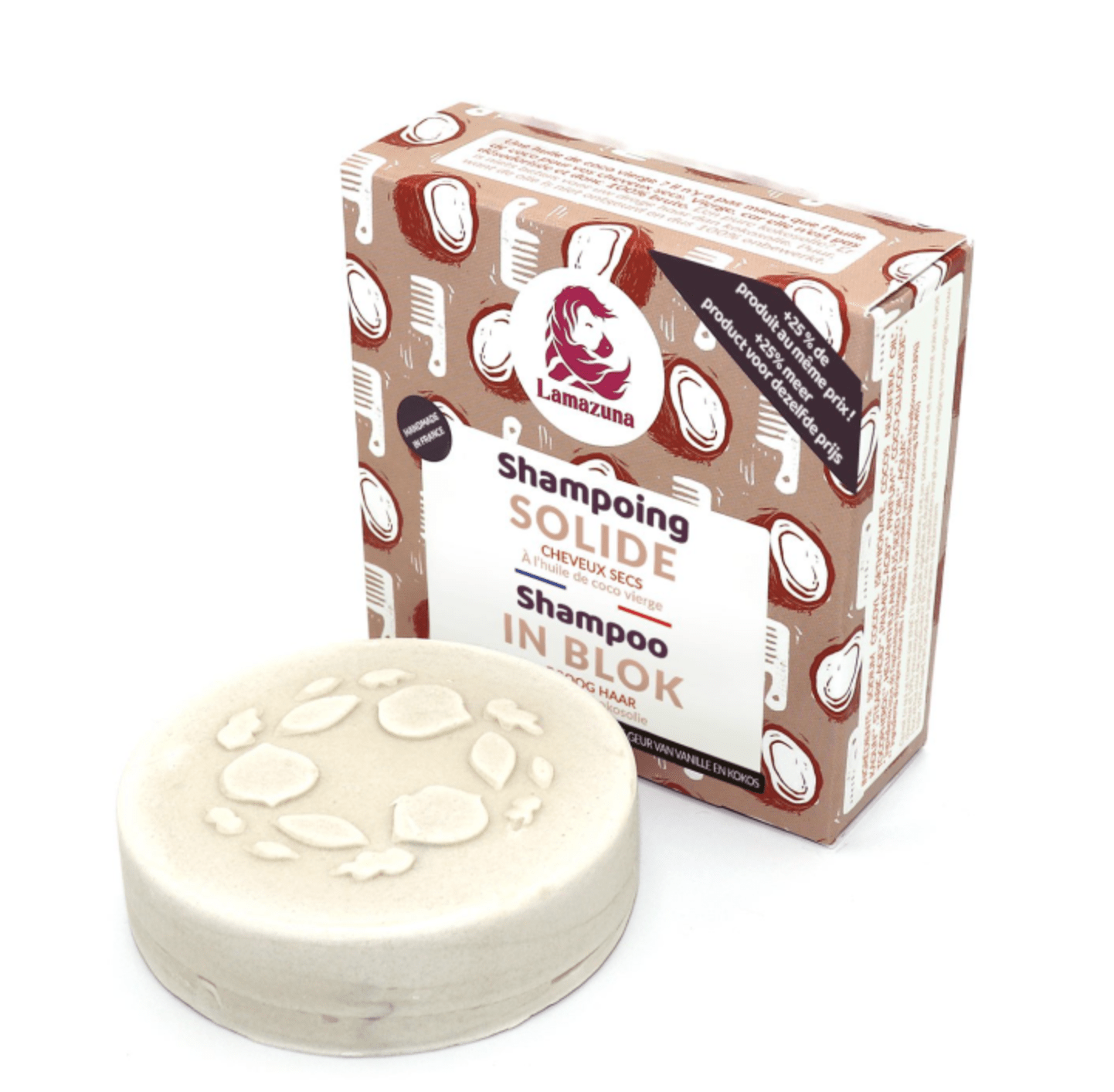 Lamazuna Shampoo droog haar Kokosolie nu in groter formaat. Heerlijke shampoo en je bespaart plastic. Goed voor het milieu. Vegan product!