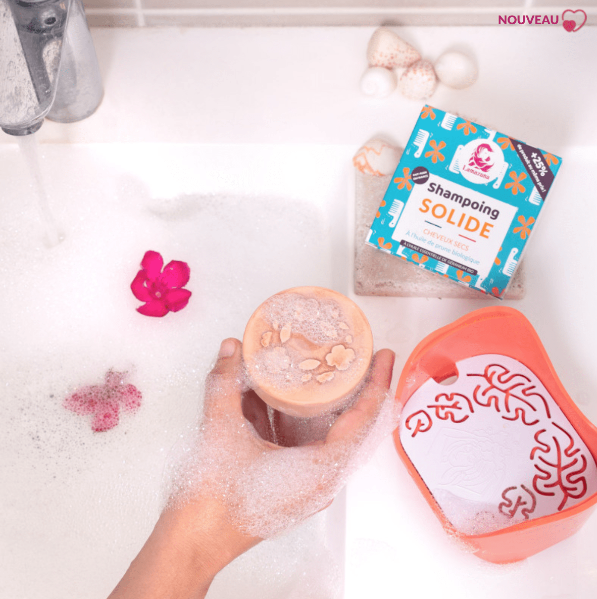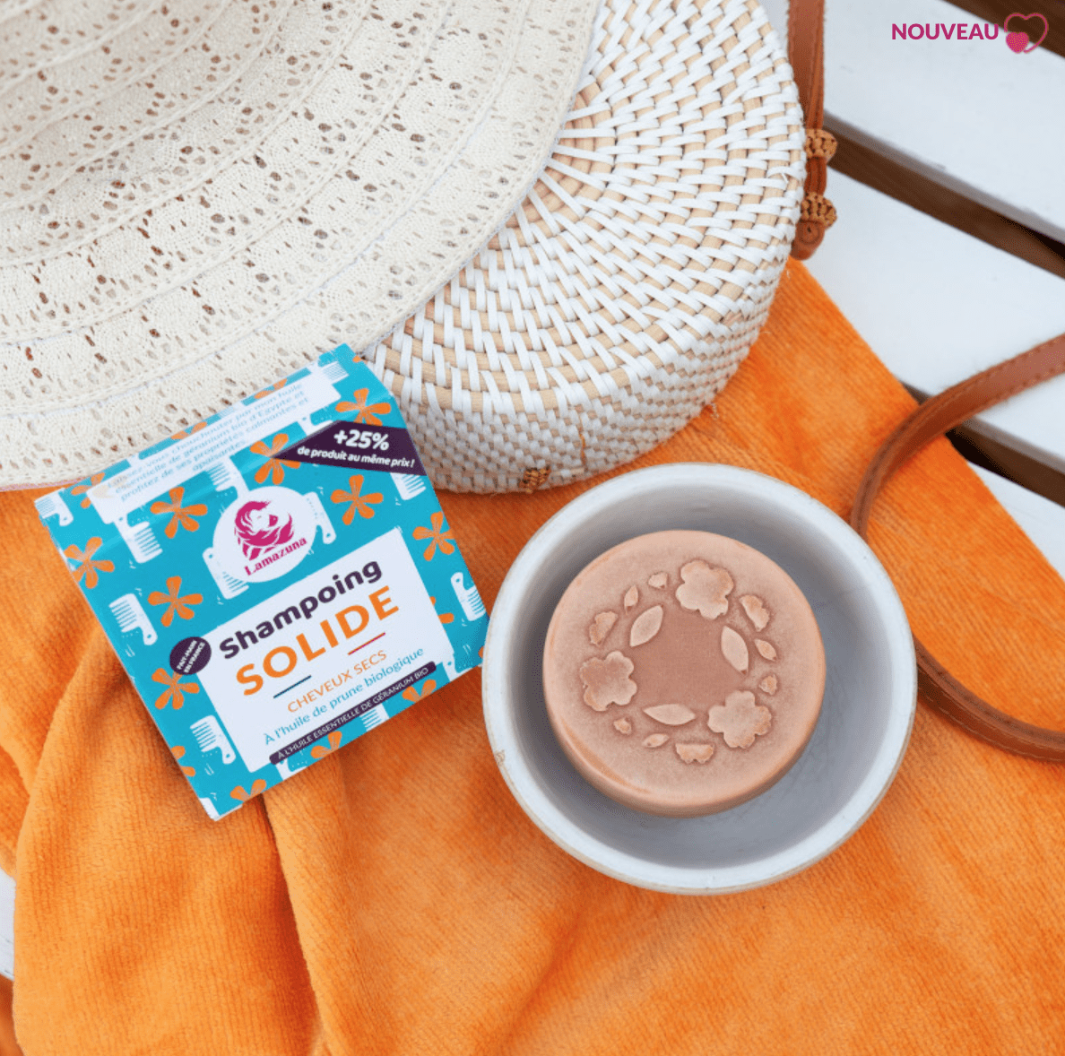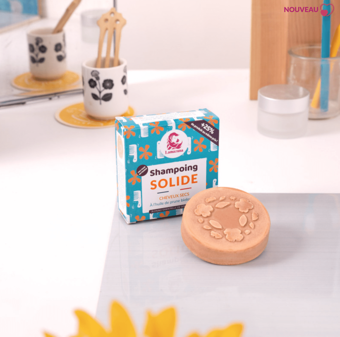 Lamazuna Shampoo Droog Haar met Pruimenolie, zonnebloem en geraniumolie voor de juiste verzorging van de hoofdhuid en uw haar. Vegan product!