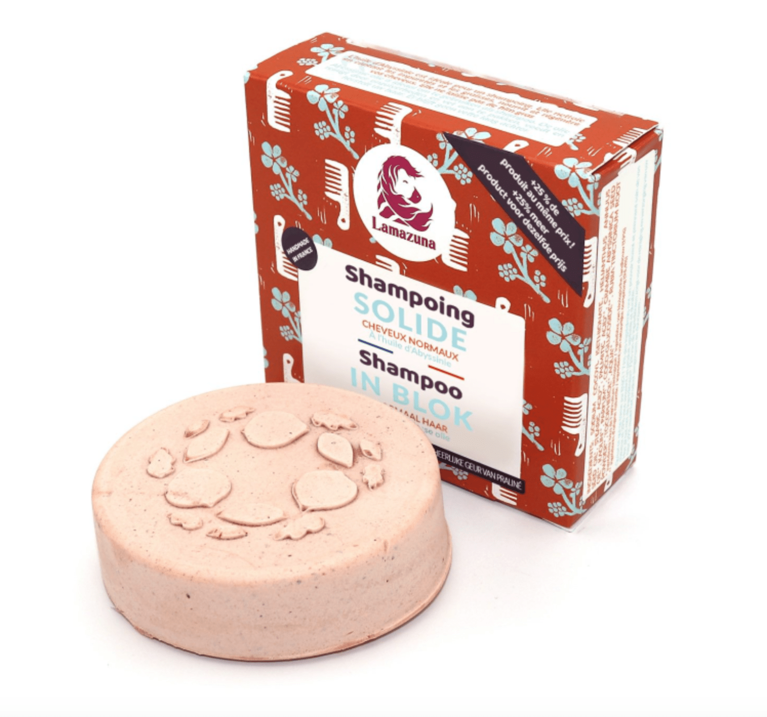 Lamazuna Shampoo in blok is een 100% natuurlijke Vegan Shampoo. Voor normaal haar, met abessijnse olie, vrij van essentiële oliën en sulfaten, 70 ml.