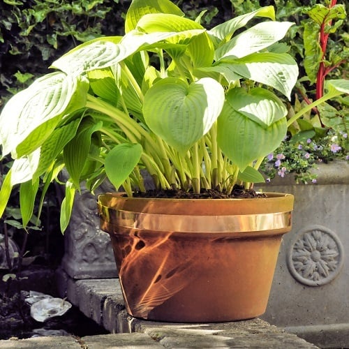 Plak de kopertape rondom potten, plantenbakken of randen van verhoogde bedden.