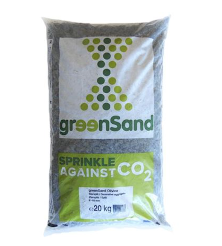 Olivijn Greensand 8-16 mm. ruimt CO2 op uit de lucht waardoor klimaatverandering wordt gestopt. Olivijn Greensand 8-16 mm. is 100% Olivijn van greenSand in een handzame zak van 20 kilo, of bigbag van een halve of een hele m3.
