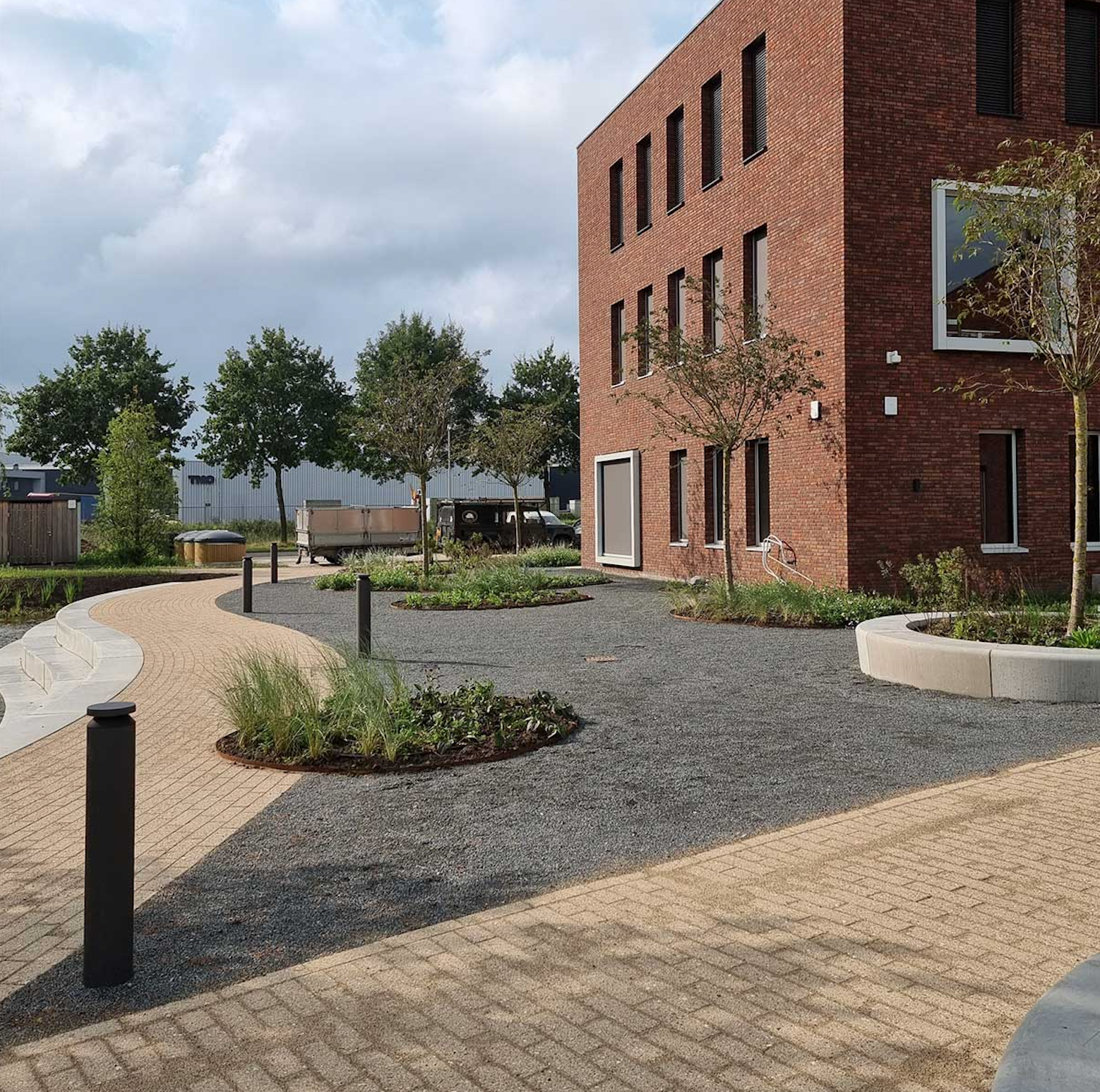 Olivijn Greensand 8-16 mm. wordt gebruikt als halfverharding voor een oprit. Maar ook om in te vegen in de kieren van water passerende bestrating.