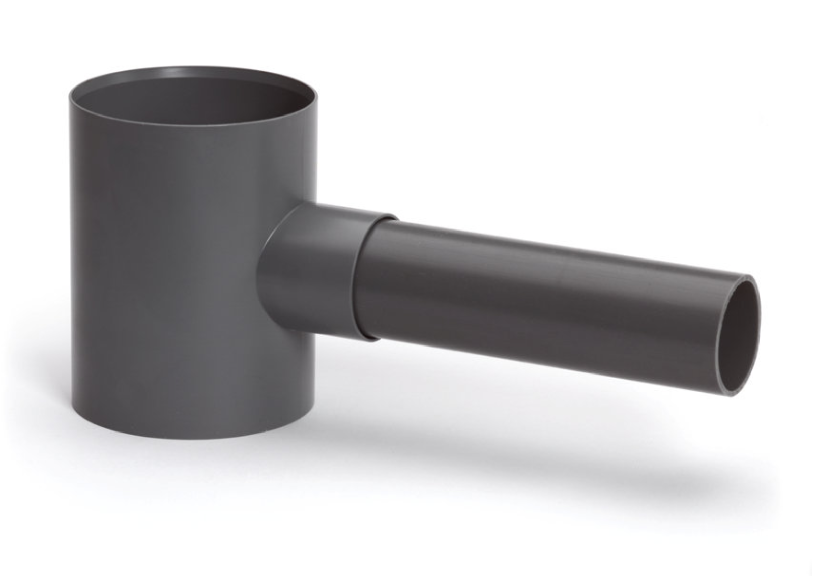 Regenton vulautomaat van PVC in de kleur grijs voor HWA buizen van 70 en 80 mm. Uitloop 40 mm.