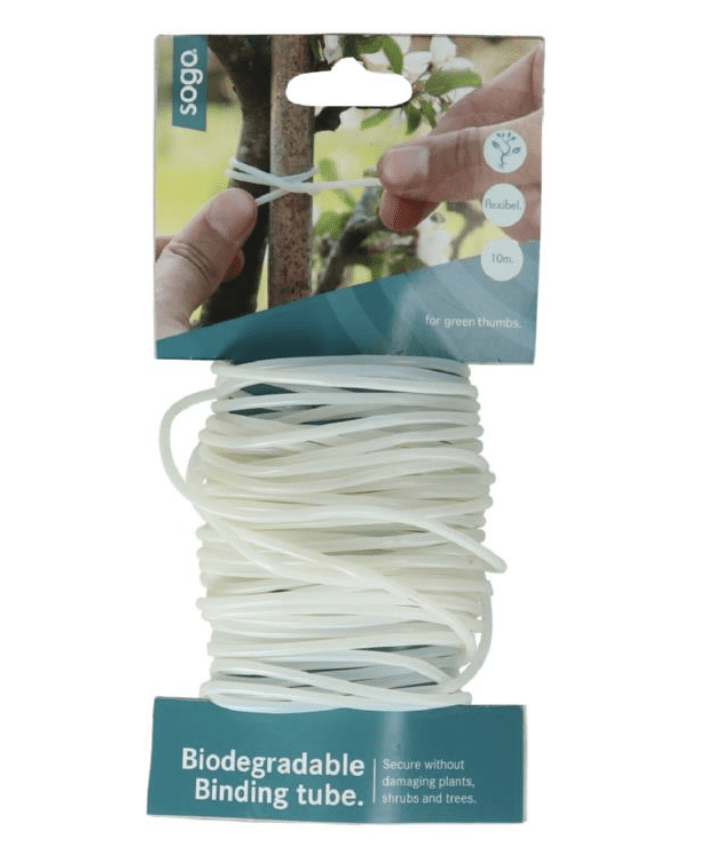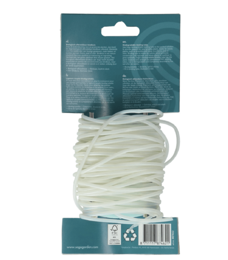 Zoek je ondersteuning voor je groeiende planten, dan biedt de Sogo biologisch afbreekbare bindbuis uitkomst. Makkelijk voor het vastbinden van houtige gewassen, zoals takken en bomen, aan een frame, paal of stok. Bindbuis is van nature elastisch hiermee voorkom je insnoering en ingroeiing