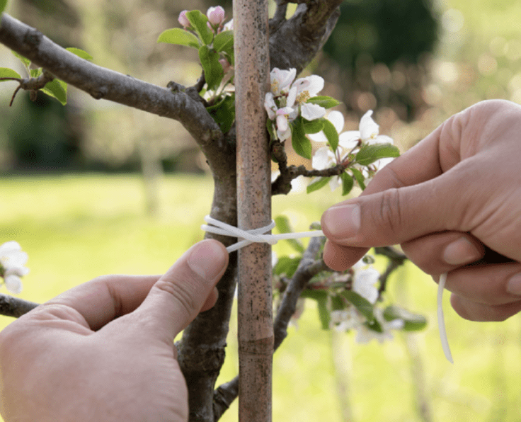 Het is een flexibel en biologisch afbreekbaar materiaal dat wordt gebruikt om planten vast te zetten aan steunen of structuren. Het wordt vaak gebruikt om jonge planten, klimplanten, struiken of bomen te ondersteunen en te geleiden terwijl ze groeien. Het is ontworpen om de plant stevig maar niet te strak vast te maken, zodat de stam of takken niet worden beschadigd terwijl ze groeien. Het biedt ook de flexibiliteit om mee te bewegen met de plant zonder de groei te belemmeren.