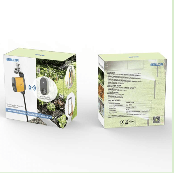 De inhoud van het pakket bestaat uit de WiFi Gateway (met extra WiFi stopcontact) en de WiFi slimme irrigatiecontroller. Wij raden aan om ook de draadloze bodemvochtsensor aan te schaffen, ook hier verkrijgbaar in onze webshop. Met de sensor kunt u het bodemvochtgehalte en de temperatuur altijd en overal in de APP aflezen.