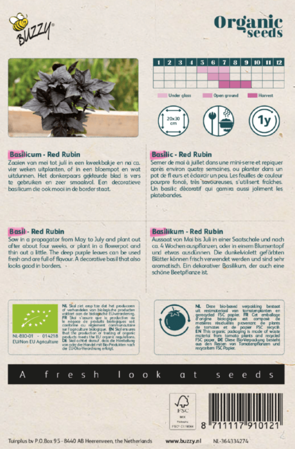 Basilicum Red Rubin Bio zijn Biologische kwaliteitszaden met Skal keur.