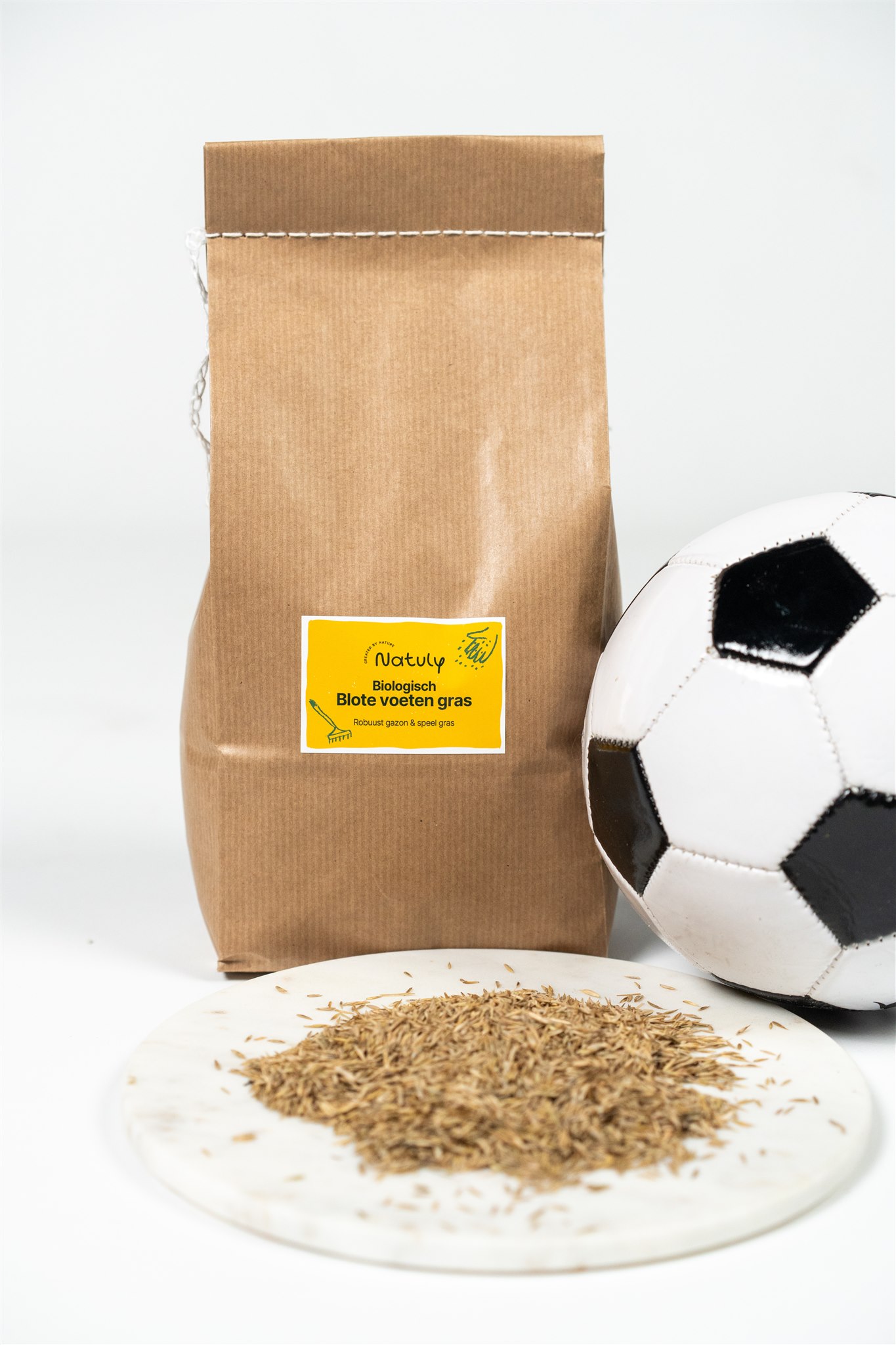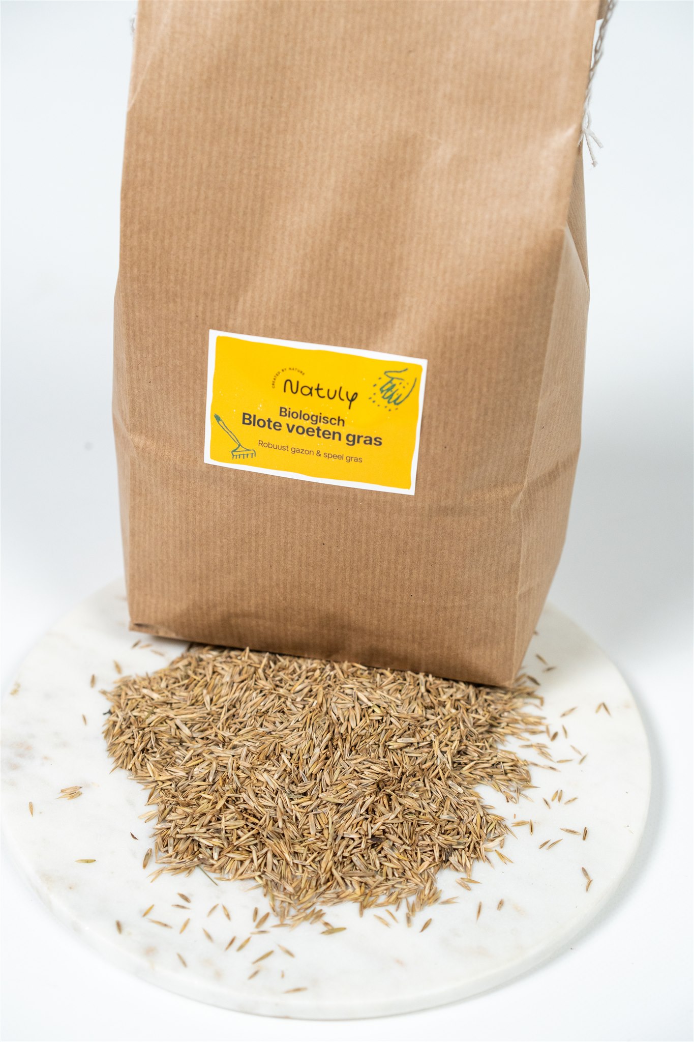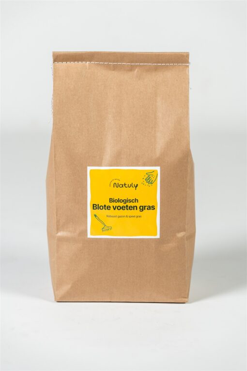 Natuly Blote voeten gras is een Biologisch, onbehandeld, robuust gazon- en speelgras mengsel. Biologisch gazon graszaad.