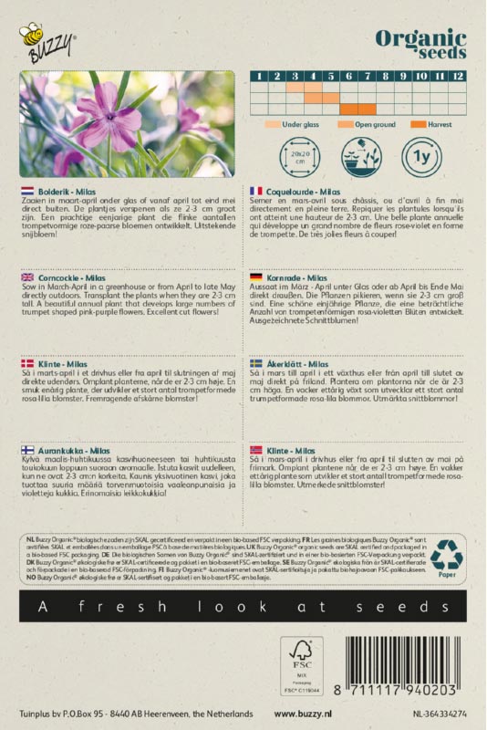 Buzzy 100% biologische zaden in bio-based verpakking