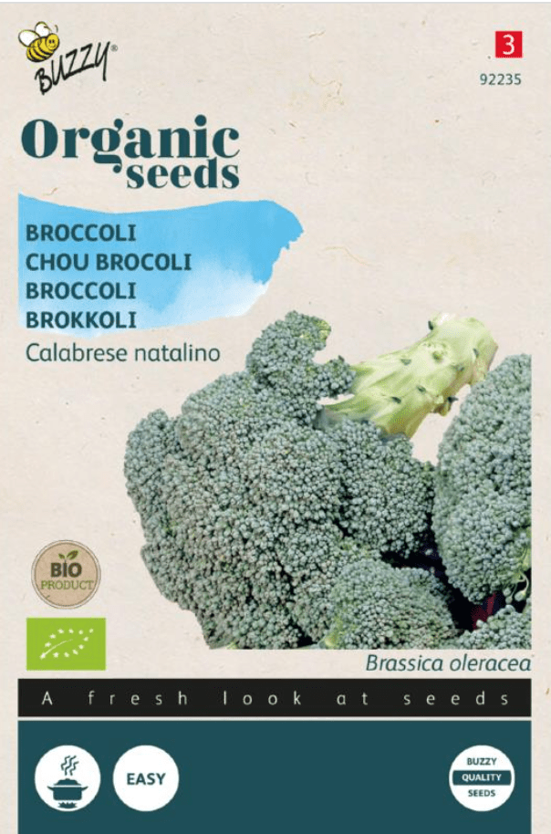 Broccoli Calabrese Natalino Bio een heerlijke gezonde groente. Broccoli kweek je niet zonder zorgen, maar met een beetje goede wil is het prima te doen. Binnen voorzaaien en buiten op een warme plek uitplanten. En… vergeet niet regelmatig water te geven op de grond, niet op de plant.