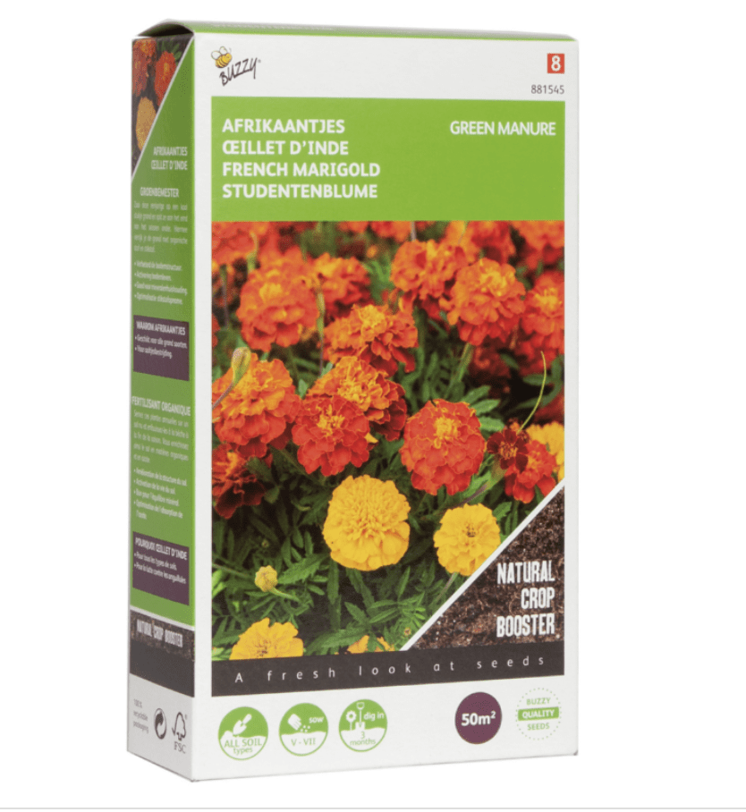 Groenbemester Afrikaantjes of te wel Tagetes worden veel gebruikt.