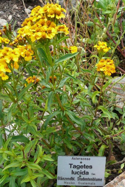 Tagetes lucida groeit 45–75 cm hoog en heeft volle zon tot lichte schaduw nodig. Afhankelijk van de variëteit of landras kan de plant vrij rechtop staan, terwijl andere vormen bossig lijken met veel onvertakte stengels. De bladeren zijn lineair tot ovaal, ongeveer 7,5 cm lang, en glanzend middelgroen, niet blauwgroen zoals bij Franse dragon (Artemisia dracunculus var. sativa).
