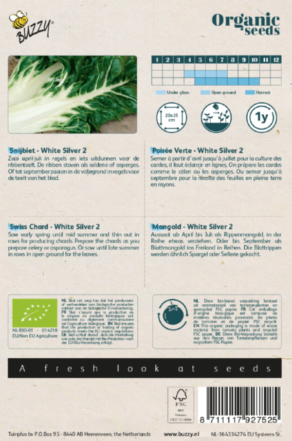Snijbiet White Silver 2 Bio is een gezonde groente, waarvan jet het blad, maar ook de stelen (ribben) kunt eten. Je kunt langdurig oogsten.