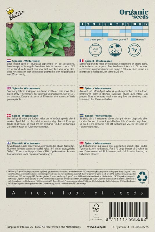 Zaaien, verzorgen en oogsten Spinazie Winterreuzen Bio
