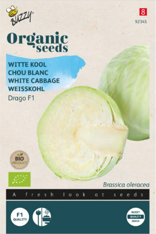 Witte kool Drago F1 Bio is een mooie en grote witte kool die goed te gebruiken is om allerlei lekkere gerechten mee te maken. Hij is niet zo smaakvol uit zichzelf, maar neemt daardoor juist wel de smaken van kruiden etc. aan. Ook leuk om er eens zuurkool van te maken.