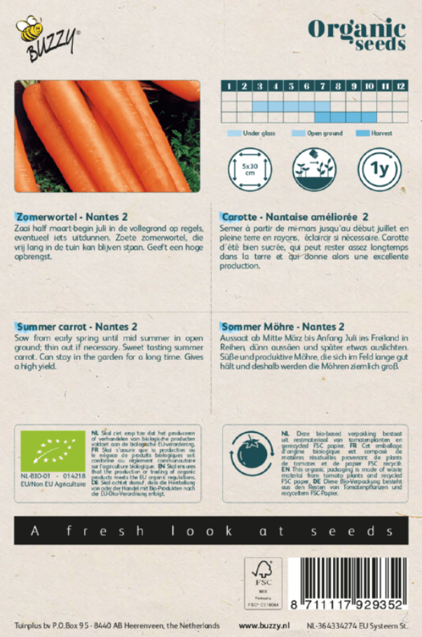 Verpakking van de Zomerwortel Nantes 2 Bio